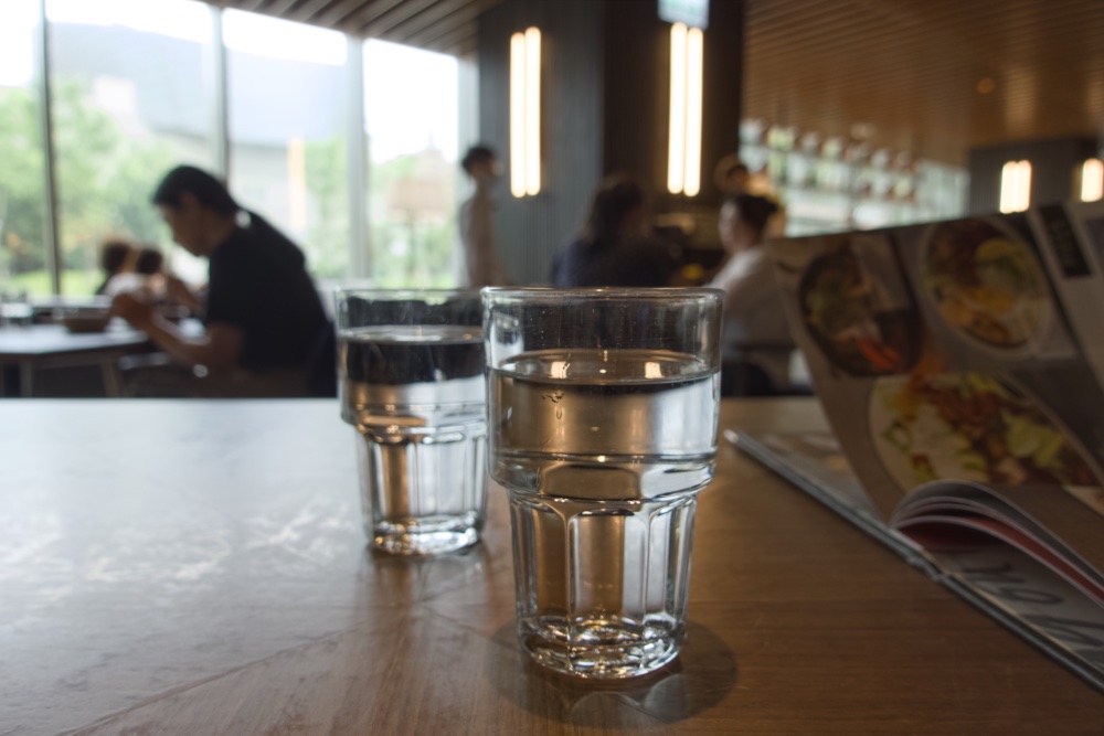 用餐環境強調的是舒適寬敞。除了走道充足外,外部的大面落地窗也讓室內特別明亮。
